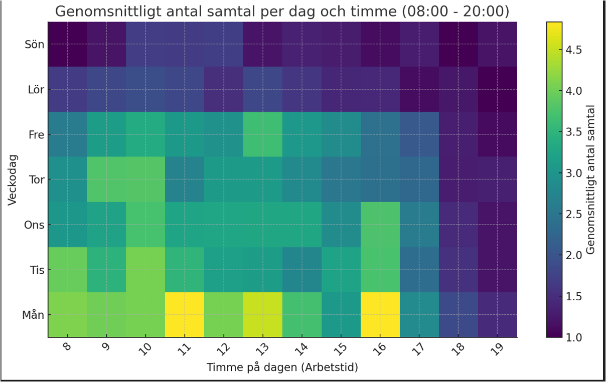 Genom att kontinuerlig mäta samtal, ärenden, tidpunkter, hur vi löste frågan mm. mm. så bygger vi upp konkreta datamodeller som Ni kan använda för att optimera personal och resursplanering. Allt för att kunna ge Era kunde bästa tänkbara kundupplevelse samtidigt som Ni kan säkerställa att ni har rätt personal tillgänglig beroende på tid och vad folk faktiskt ringer och frågar efter.